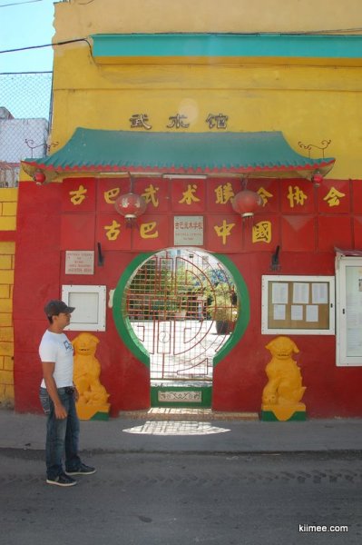 在一些教堂与城堡之后,到达国会大厦与附近的华人街,耳环带我们进入一条中国店铺构成的街巷,前天我们并未发现这里,街道不宽,两侧雕梁画栋,檐角飞扬。我们看到一家门面上写着“豆浆”两字,便打算稍作歇息,顺便请耳环品尝一下中国豆浆。不过耳环却完全没有尝试的兴趣,再三推辞索性点了一瓶可乐。耳环有些犹豫,不过还是对我们说:所有古巴人都不喜欢豆子,恨豆子,因为政府总是把豆子掺在各种售卖的食品里,用来填充分量。整条街我们只见到一张年轻的中国面孔,还有一名混血的店员,耳环说他们可能已经是第四代了,稍多一些的是老华人,革命之后这里商品交易不自由,年轻人早已远走他乡。