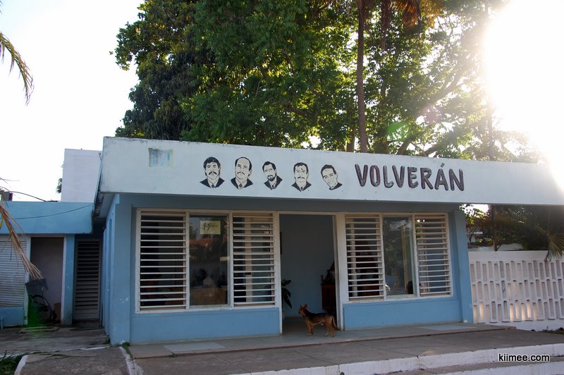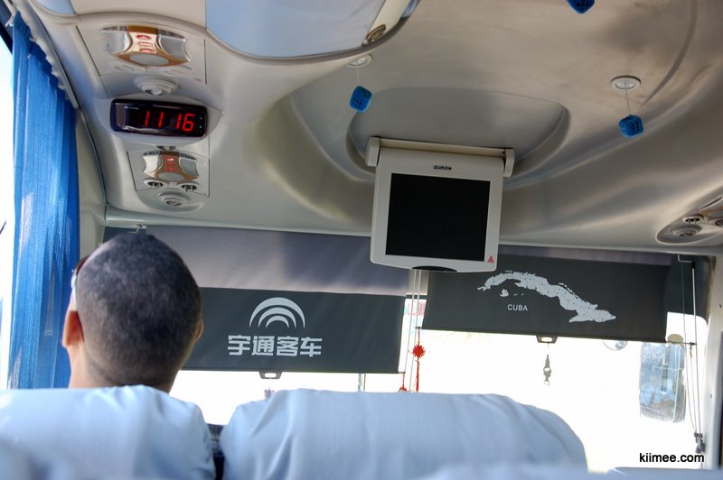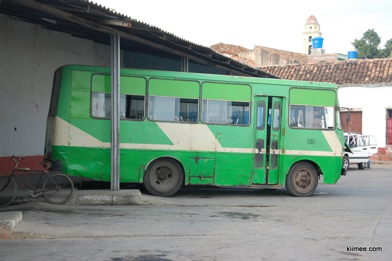 我们搭乘9:00出发的巴士,到达已近13:00。客车快要到站的时候,看到有两个老外端着相机跟着跑,很是奇怪,因为在古巴Viazul的车不算少,拍张照片不是什么难事。不过下车的一刻总算明白了他们镜头的对象——车下接客或是拉客的人们,至少有30个人在车下嚷作一团,这是我们到目前为止在古巴见过的最热闹的场面。手里拿着各种道具,有的是照片,有的是民宿的名字,接我们的客栈主人比较低调,不过我们比较显眼,一车游客只有我们两个亚洲面孔,自然也不需要逐一确认。