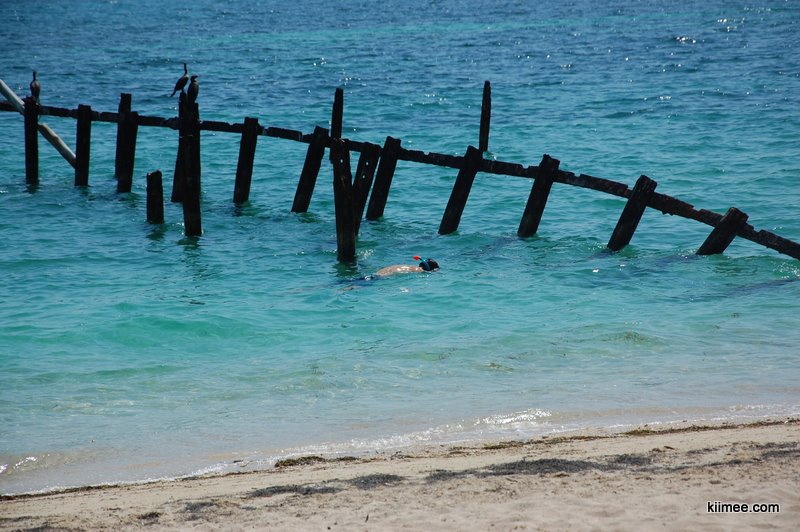 车开了20分钟,海边就到了。没有Jutias的海滩漂亮,只能算是中规中矩。岸边就是酒店,搭了一些遮阳棚,提供饮料。不过大棚只有酒店住客才可以进。我们带了浮潜管,但鱼很少,可能是风浪太大的缘故。不过在靠近木桩的地方倒是看到了大群大群的鱼来来回回的窜,有大有小,像是在水族馆一样。kingwing同志就在那5平米的地方看了足足两小时才肯上来。