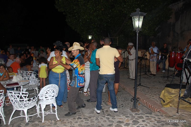 晚上吃过晚饭,八点钟左右就听到远处喧闹的音乐声。我们赶紧出去,在一个涉外酒吧找到了音乐的来源。原来临近周末,他们请了支乐队驻场。座位已经坐满了,我们就和其他人一起坐在旁边的台阶上。当然音乐不能白听,每人得点一点东西,不然服务员就在你身边不走了。这里的价钱不算便宜,都是按红比(CUC)结算。客人大部分是外国游客,不过也看到了几桌本地人,像是乐队成员的朋友。现场的气氛非常好,到后来7-8层台阶上都坐满了人,每首歌都有人下去跳舞。当地人跳的Salsa真是让人大开眼界,比看舞蹈比赛过瘾得多,他们娴熟的律动,就像和音乐融为一体。我们一边观赏,一边感叹。亚洲人应该是怎么都不能学成这样的,就算能学会所有的舞步,但是骨子里没有这么热情奔放的文化,是跳不出这个舞的精髓的。