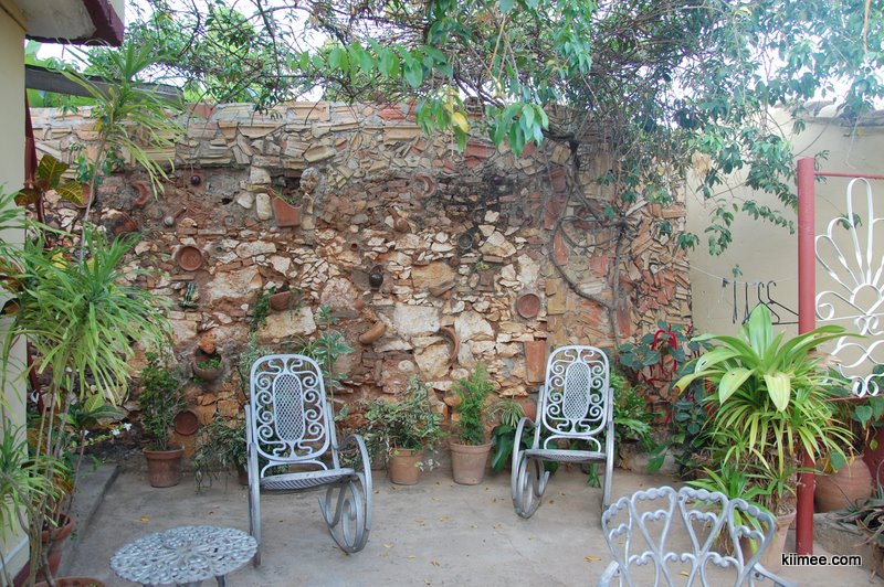 这家民宿分为前院后院,我们就住在后院里,一个单独的小房子。窗外就是院子,院墙砌的很有意思,高低错落嵌着很多陶制的小花盆。收拾完毕,主人例行问我们是否要在他们家吃饭。这当然是方便我们,价钱也不贵。我们点了一个龙虾和一个鱼块饭作为晚餐。在古巴,龙虾还是要多吃的,相比来说性价比太高,就比其他的猪肉饭鸡肉饭贵1-2红比(CUC)。:)