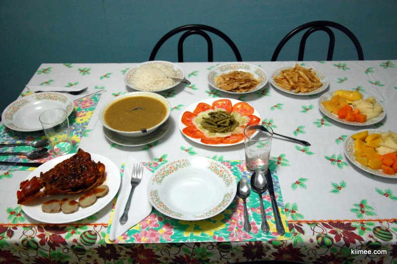 女主人听说meer身体尚未完全恢复,她说她母亲做的蔬菜汤对肠胃恢复很有帮助,里面还会特别加一些本地产的香蕉,在吃的时候发现这种香蕉和平时的水果蕉不同,较干,也没有特别的甜味,更像是薯类。汤做了很多,蔬菜和水果也给了三盘,加上米饭和我点的猪肉,完全超过我们的饭量。