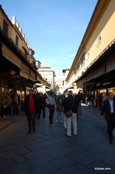 下午主要在旧桥附近闲逛,其实旧桥是很多街头画家的主题之一,甚至我们住的房间中所挂的也是描绘旧桥的一幅画。这座桥是二战时佛罗伦萨经过轰炸后唯一保持的桥梁,建于14世纪。不过我们两次经过,可能由于光线原因,都未能感悟到画家心中的美。