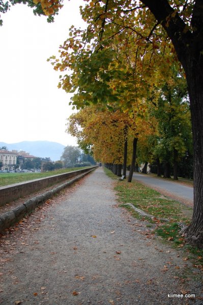 卢卡最让人流连往返的是她的城墙。从火车站出来,对面就是长长的城墙。顺着城墙的弯可以直接走上城墙顶部。和我们在国内见的西安、平遥等的城墙不同,走在城墙上面就像是走在普通街道上一样,路边有林荫道,还有很多树木,根本看不出是城墙上的样子。要下城墙,也是和普通道路一样,下个坡就ok了。