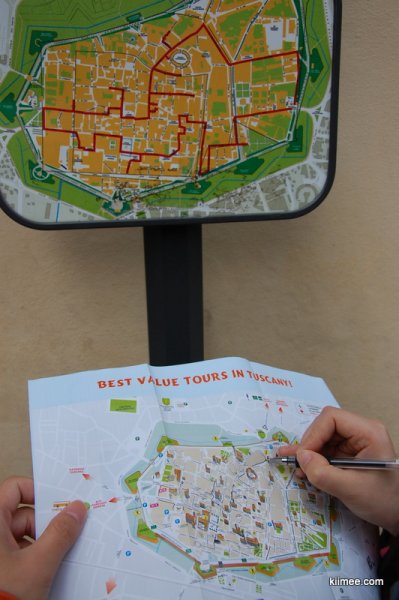 卢卡城市虽然小,不过规划的景点却很多,给我们画了一个旅游线路图。我们照抄下来。不过没有什么必要,随意逛也很有意思。