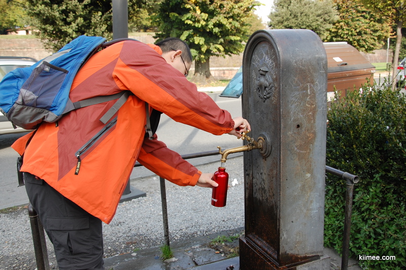 不知道是不是城里的自来水系统不够好,居然看到好多人提着水桶、水壶去街边的水泉处接水,还有开车来接水的。我们也不免俗,顺便也接了一壶水。图为kingwing同志正在接水中(事后品尝貌似有点儿甜)。。
