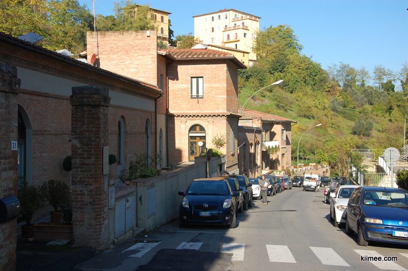 早上8:10分的火车,从佛罗伦萨出发,经过近一个多小时的开行,到达锡耶纳车站(有的车次需要在恩波利Empoli换乘,上车前需看好时刻表)。其实从佛罗伦萨搭乘SITA汽车抵达是大多数游人选择的方式,因为锡耶纳是一座山城,火车站位于山脚,而巴士可以驶入古城。在锡耶纳火车站也有巴士可以抵达城内,由于我们到达时间较早,所以选择步行上山。在车站的information询问,步行约20分钟,但是由于沿途游客稀少,很难找到正确的道路。于是,我milestone的GPS功能与RMaps(Android上的离线地图软件)总算第一次发挥了作用,实际步行时间,30分钟,沿途空气清新,晨练的人不少,所以如果在时间不紧张的情况下到达锡耶纳,这条路是不错的选择。