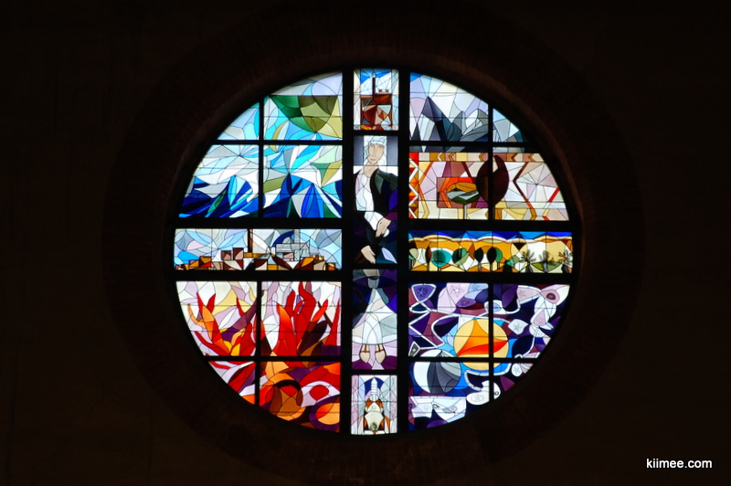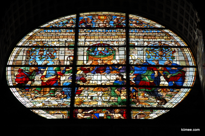 今天前往了中世纪小镇锡耶纳,一路美景人情让人留恋,最让我印象深刻的是锡耶纳大学旁的一个教堂。行至那里,已经游人渐少,黄昏将至。教堂极为简朴,很高很空旷,甚至墙边的圣经故事画像都是立在大木板上,而不是画在墙上。光线很弱,靠着彩窗撒下的阳光和圣像前几根蜡烛的微弱烛光能勉强看清画像的模样。整个教堂最醒目的就是窗户上的彩色玻璃。细致勾画出圣经故事,用色绚丽却不失沉稳。空气中弥漫着一股老旧又清新的味道,让我不由的想到很久以前经常去的图书馆,装满书的房间里也满是这样的味道。轻轻淡淡,让人很安心,我贪婪地尽情呼吸,希望能把这感觉深深印刻在记忆里。