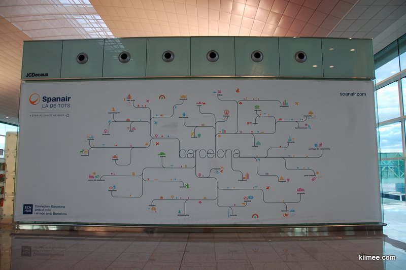 DSC_7292 巴塞罗那机场西班牙航空的海报,标识了该公司从巴塞罗那始发的所有航班
