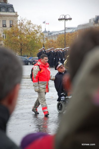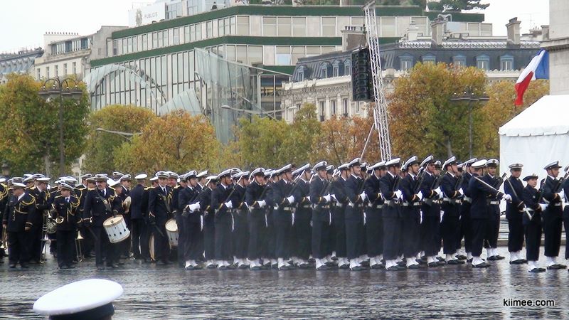 坐地铁来到凯旋门,以外发现有警察在地铁通道里面指引方向,心里有一丝激动。上到地面上,果然是有状况。凯旋门已经被围成里外3层,警察们堵在口上一个个手动安检。仔细看才知道,为了纪念第一次世界大战结束,今天在凯旋门有个大型纪念活动。政要以及老兵们都来参加,军乐队也在演奏。人们只能隔着街道围观。由于我们到得较晚,活动已经接近尾声,只得插在人群中拍了几张照片后,转去蓬皮杜艺术中心。
