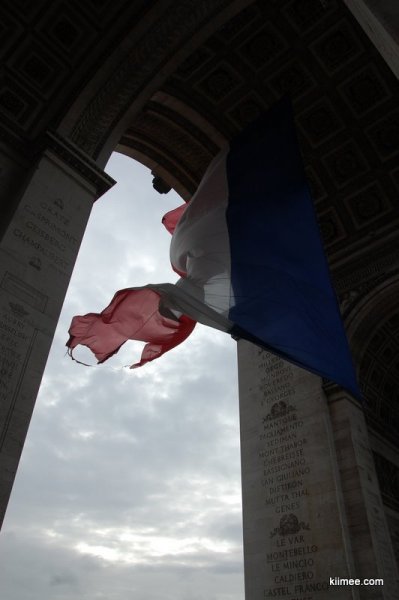凯旋门下 凯旋门中飘扬的法国国旗,下角已被风撕碎(或者是因为某种原因刻意如此?)
