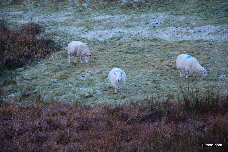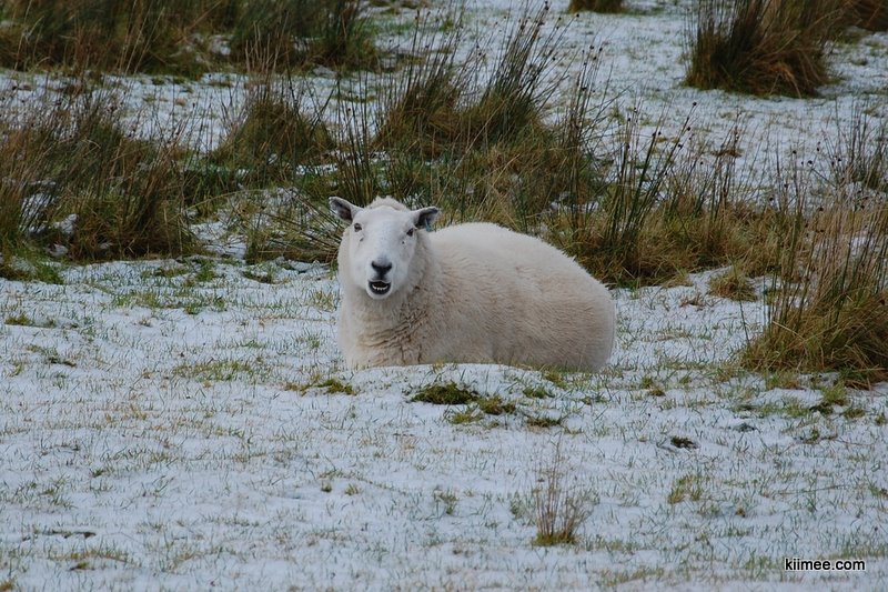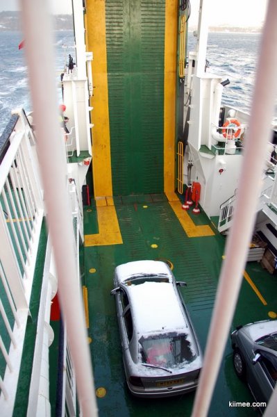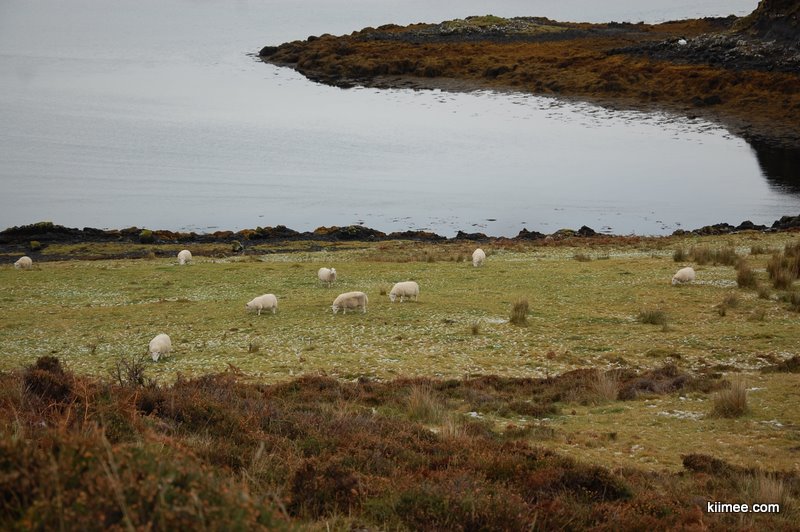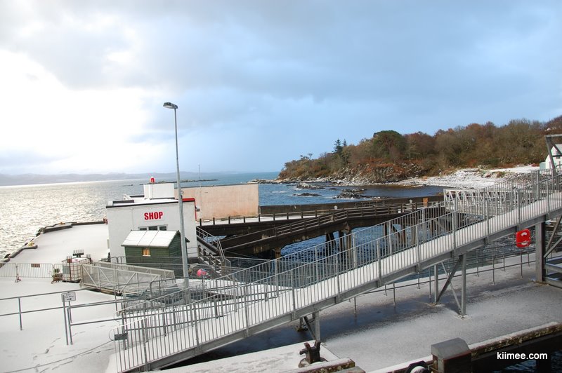 Skye岛东南部的小镇Armadale有前往Mallaig的渡轮,我们计划搭乘10:15由Mallaig出发的火车,但是Portree前往Armadale的巴士较晚才开始运行,幸好碰到和我们行程一致的四位中国人,于是请旅店伙计帮忙联系的士,才得以顺利成行。清早的Skye岛静谧而且美丽,一路向南,近两个小时的行程,变幻无常的天气再次向我们施展他的魅力,一会冰雹、一会太阳、一会又暴雪,搞得meer同志紧张兮兮,一直担心会误点。还好,距离开船差20分钟的时候,我们终于见到了码头。
