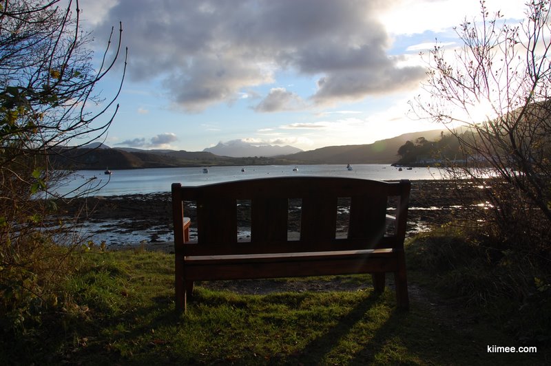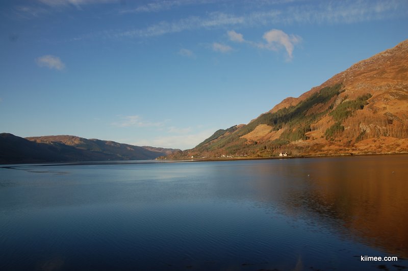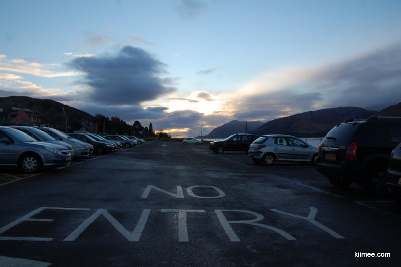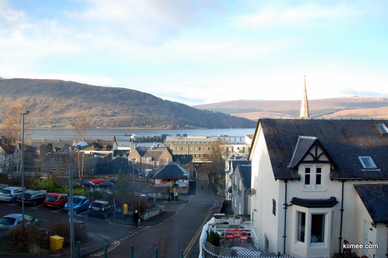 这里的天气与Skye岛上多变的雨雪天气截然不同,午后的阳光懒懒地照在黑色石块铺成的路面上,微微泛着点光,远处是Loch Eil湖,住宅依山而建,干净整洁,空气中弥漫着清新的味道。总而言之,让我们感觉既懒散又舒适,这一刻,我们俩共同做了个决定,今天不中转了,就在Fort William住下了!于是立马找寻住宿,问了几家B&B,找到个四十磅含早餐的,房间、位置、风景都很满意,这个价钱在淡季比较合适了。