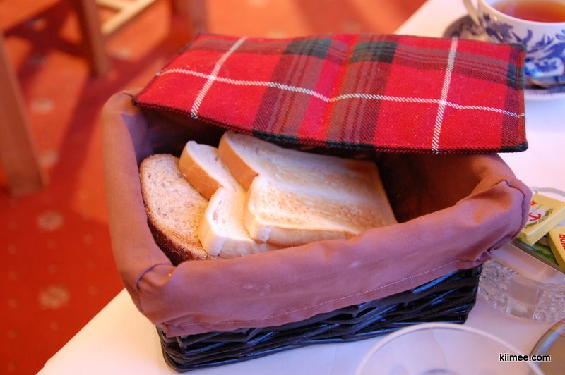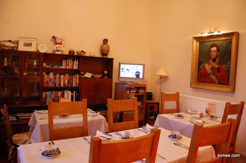 这家房子的地段真是超好,我们住在天字一号房(标号为1的房间), 坐看城堡,桥梁和尼斯河。室内装修得朴素不乏温馨。早餐提供;冷餐:牛奶、橙汁、3种麦片、4种果脯罐头、大杯酸奶,这些是自助的。等你坐定后,问你要茶还是咖啡,然后随同烤好的吐司一起端上来。热的吐司放在一个缀有苏格兰格子纹布的小篮子里面,再盖上布,以免变冷。接着再端上来传统的full breakfast,餐盘里面包括蘑菇、培根、煎蛋、煮豆子、小煎饼、Haggis、香肠、西红柿。一边吃,一边看着街景,再听听电视的新闻,真是太享受了。在这里住了几天,天天吃得超饱。