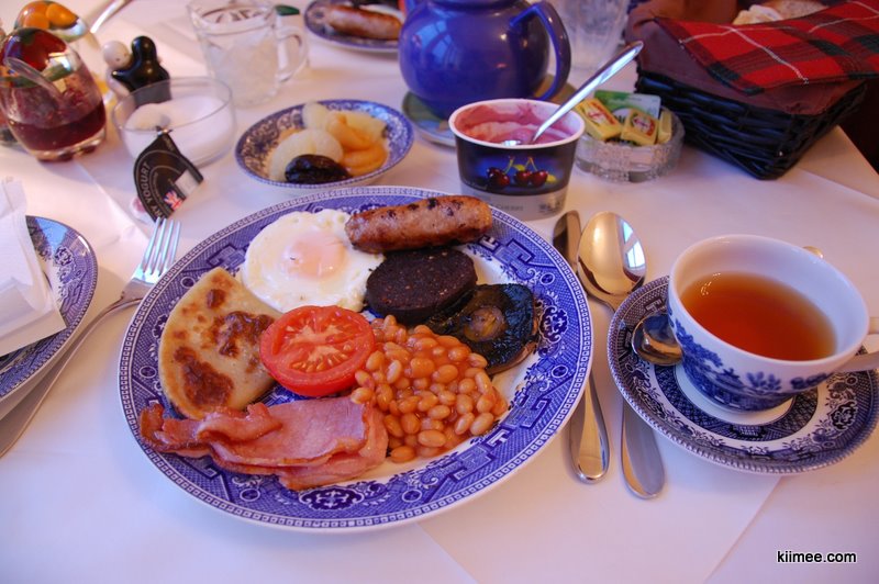今天是赶往传说中非常美丽的skye 岛的日子,是高地旅游的经典之地。去往skye岛的车大约要走4个小时,所以早早起来收拾行装。马上要离开Inverness,不得不提一下我们在这家B&B的早餐。之后又住过多家B&B,这家是目前为止最讲究、丰盛和美味的。