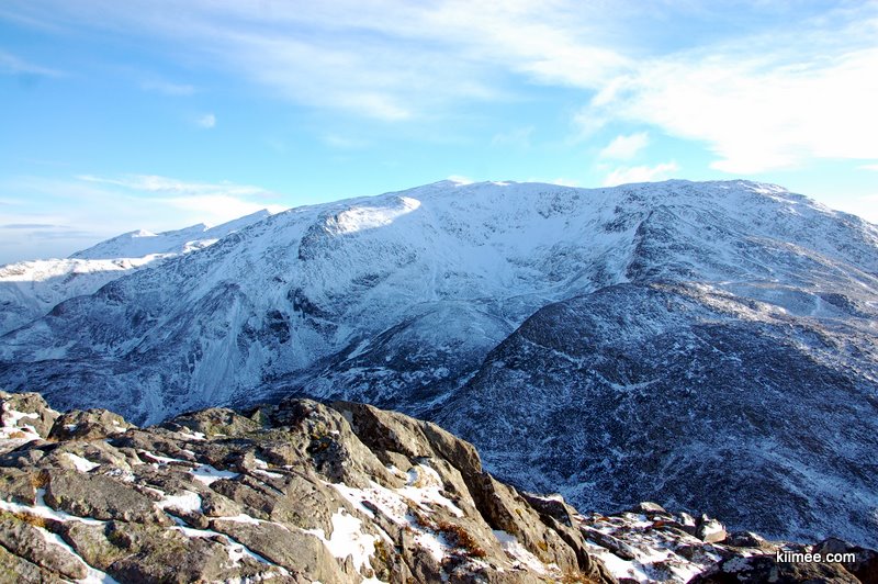 一路上石头越来越多,路越来越陡,冰雪也越来越多。走到后面,经常需要手脚并用。而且由于我们的龟速,我们已经由最开始的第一批,掉到不知道第多少批,我们笑称这是“一直被超越”。不过这样也好,前面已经有很多脚印,上山的路可以很容易辨识出来。这段路我们大约又纠结了两到三次,因为kingwing担心上山容易下山难,直到越过一座山脊,路面逐渐变缓才终于确定今天的登顶目标。