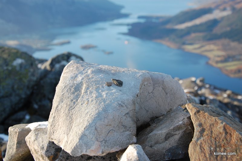 最后的50米道路,花费了大约20分钟,突然间道路平坦,我们终于登上了最顶峰!回忆途中,我们反反复复纠结了五六次,但我们终于还是爬上来了。看着山下美丽的湖泊,脚下诸座雪峰,远空幽幽的蓝天,感受耳边呼呼的冷风,我们非常庆幸自己的坚持。山顶上有登山者码的石头堆,大概是登顶了,就放一块石头,表示留念。我们也捡了2块(特别小的)放在石头堆上,合影留念。
