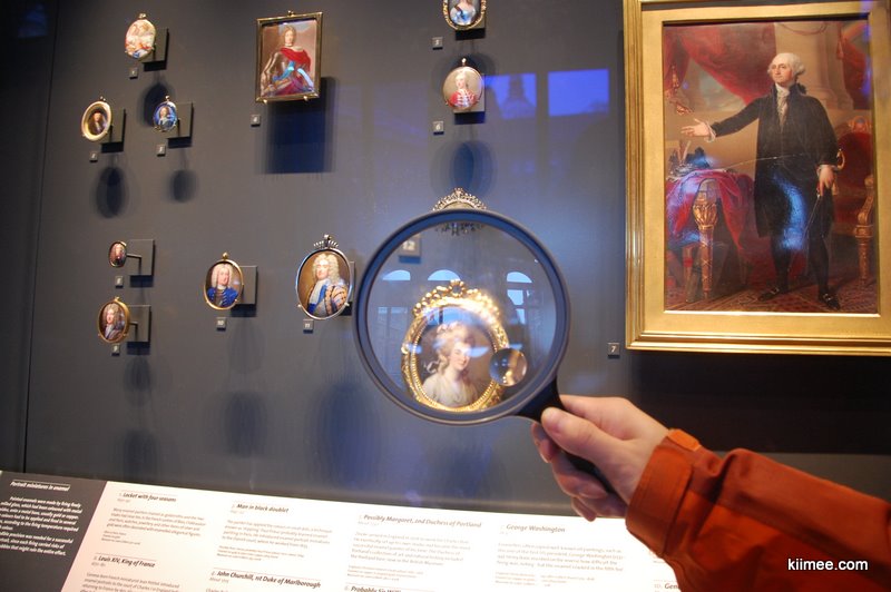 博物馆给微缩画展区配备了放大镜,当我们拿上放大镜看时,感觉顿时不同,从细部看物件的感觉真是太好。看了几幅之后,我们就开始买椟还珠的研究起了放大镜,meer不断称赞这个放大镜好,比在淘宝买给长辈用的要好,要是能带回去就最好了。