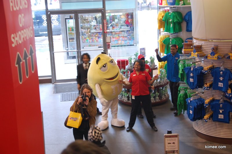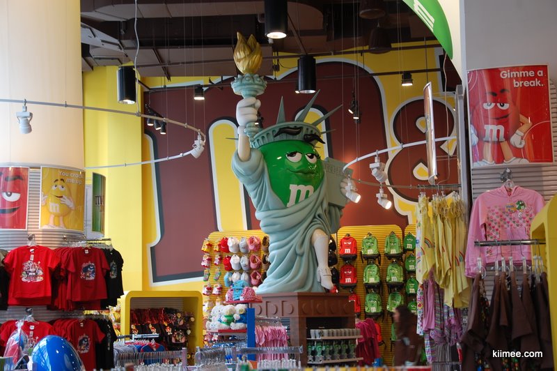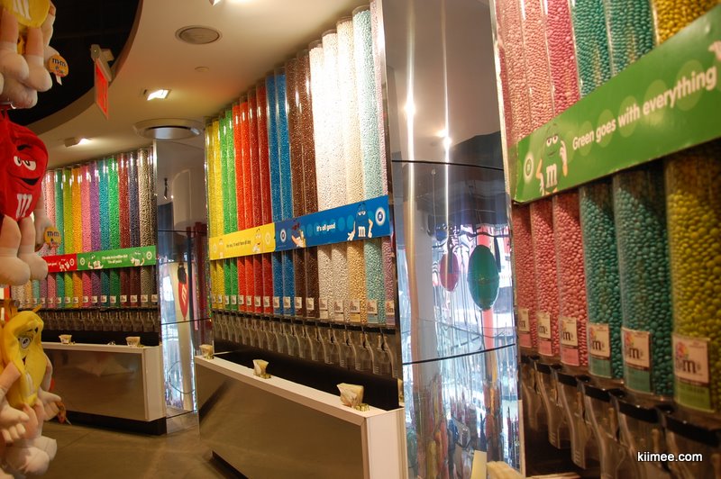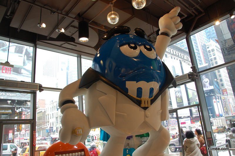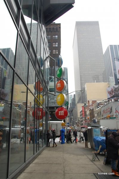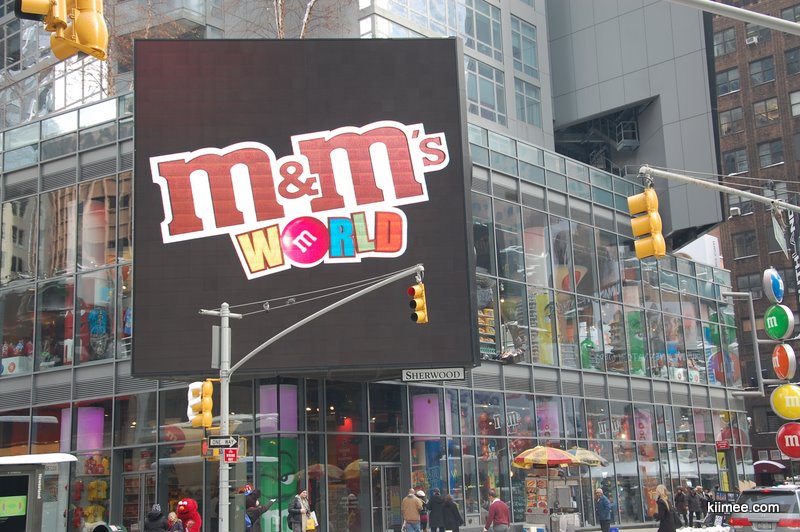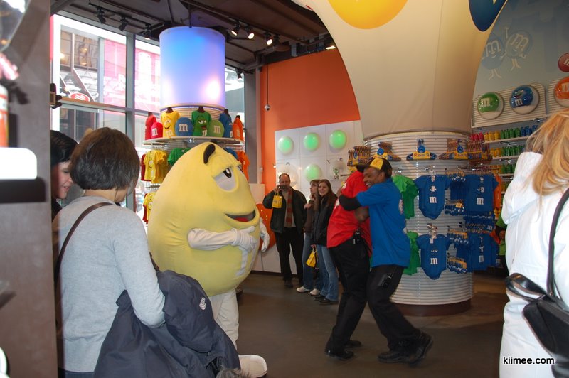 今天的主题就是闲逛曼哈顿,对纽约有个基本的熟悉。从时报广场出来没几步,就看到了一个超大三层楼的M&M巧克力豆专卖店。这种小小的彩色巧克力豆深受meer同志的喜爱,在国内超市也有不少这种糖豆豆买,不过看到这么大的专卖店还是第一次。进到店里,正在放着跳跃的音乐,一个mm豆吉祥物正在跳舞,几个店员也在跟着跳,气氛high得不行,我们也不禁收到感染,稍稍放松初入纽约的紧张感。