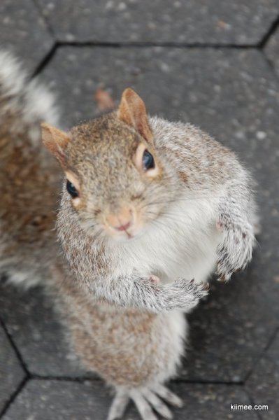 从MM豆店出来,沿着第五大道继续闲逛,路过麦迪逊广场花园。一个小小的城市中的公园,在这个处处高楼寸土寸金的城市显得难能可贵。在小公园里,毫无意外的发现了很多小松鼠,大雪之后估计都冻坏了,看到人就跑过来要吃的。俗话说狗急跳墙,meer提着一个塑料袋站着看松鼠,也被小松鼠给偷袭,可惜塑料袋里面没有他们想要的花生。