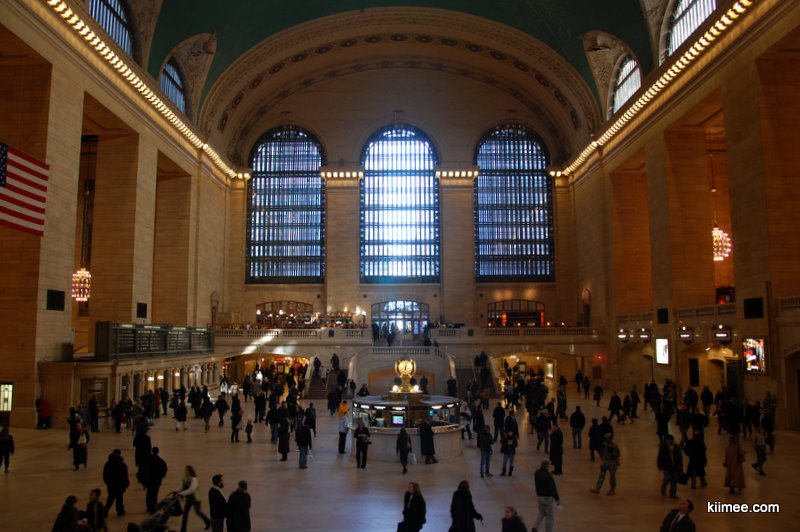 今天在纽约的终点行程是去参观联合国大厦。依然是坐地铁7号线,提前在中央车站站下车即可。中央车站(Grand Central Terminal)是一座很有风味的建筑,值得参观一下。据说如果按照月台的数量来说,中央车站是世界上公共建筑空间最大的车站,拥有44个等车台和67条铁轨。不过奇怪的是,在美国火车是非常辅助的迁徙工具,远逊与飞机与汽车。