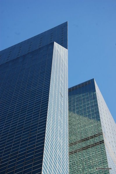 联合国总部的地址已经位于曼哈顿的边缘,可能处于安防或地理的原因,处处覆盖的地铁并没有设置临近的站点。出了地铁后,又走了3-4条街才找到。在我们看来,联合国大厦在高楼林立的曼哈顿属于独树一帜的建筑,因为他实在实在太普通太普通了。就是一个方形的大楼,每层配着最简朴的方形窗户,没有任何特色可以形容。当然,没有特色,在这个争奇斗艳的曼哈顿那就是特色了,哈哈。