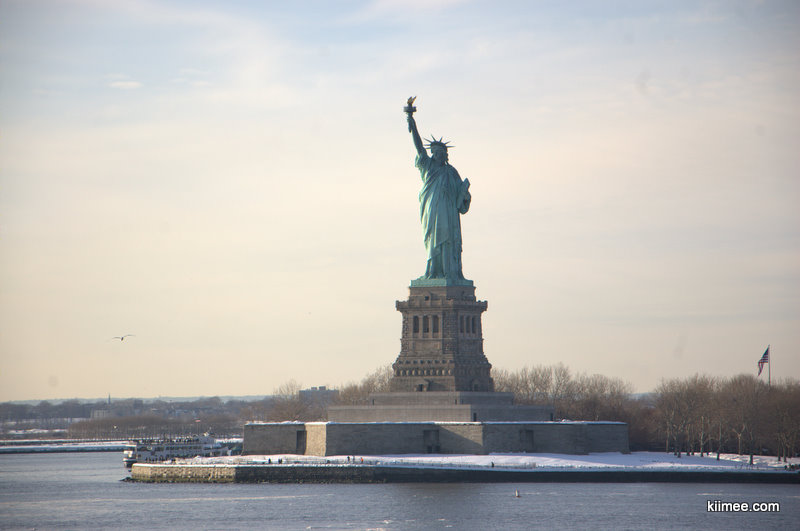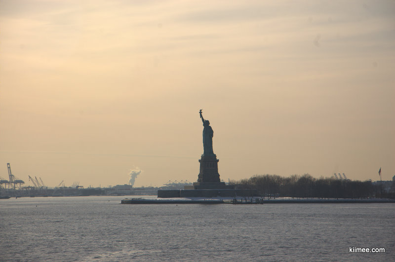 搭乘地铁直接到最南端的码头,终于见到了传说中的自由女神像,原来距离岸边还挺远的,只能远远看到一个身影,只能改天再去坐船看个仔细。