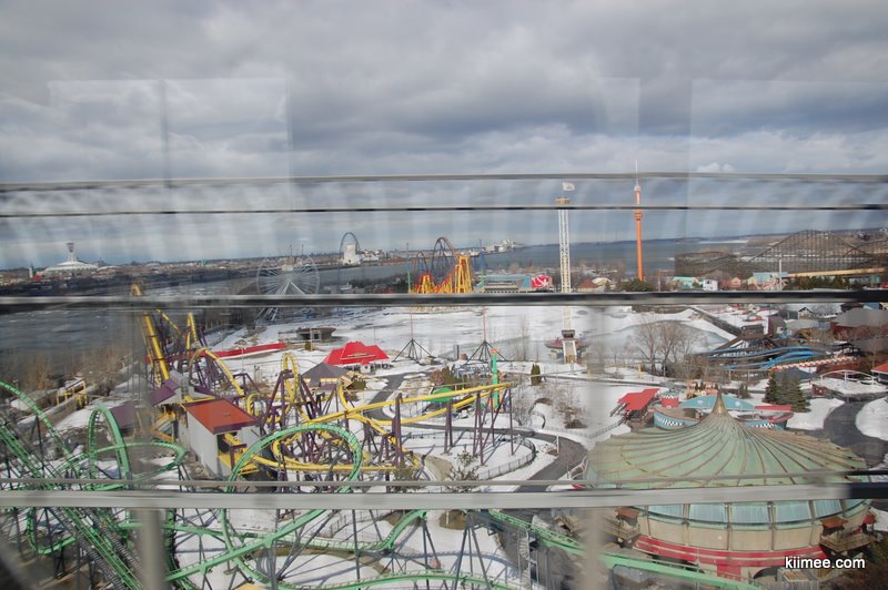 巴士将要驶入蒙特利尔城区时,看到车窗外一个特别的游乐场,粗粗数了一下,共有6条不同的过山车轨道。刚才特意一查,这里是La Ronde游乐场,居然有10个类似过山车项目。BTW,这个网站居然是专门记录世界各地过山车信息的一个数据库。