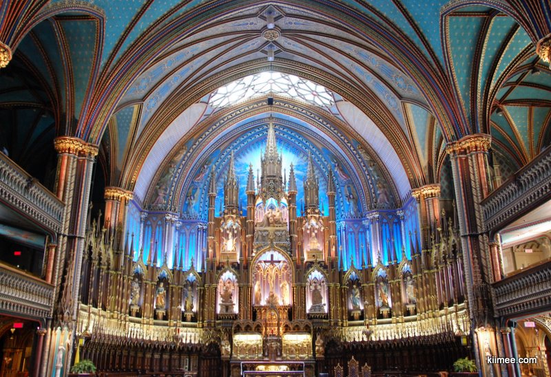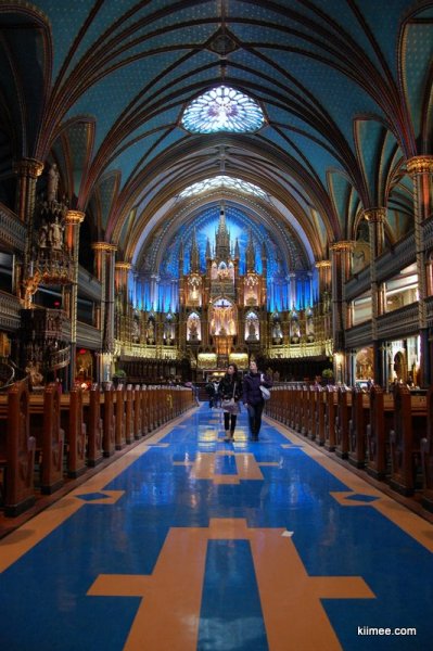 LP上的蒙特利尔部分介绍了一条老城徒步线路,环线,起点与终点都在德阿姆广场(Place d’Armes),主干线路1.5公里。这条线路中最大的亮点莫过于圣母教堂(Basilique Notre-Dame),这个名字让人不禁想到巴黎圣母院(Cathédrale Notre-Dame de Paris),不过虽然中文译名相同,在宗教意义中两座教堂所处的地位却不同,并且蒙特利尔这一座的地位反而更高。