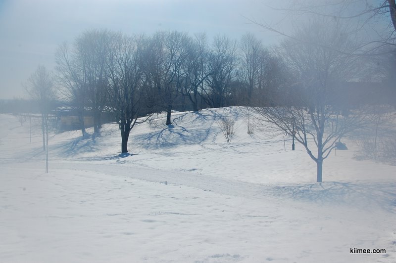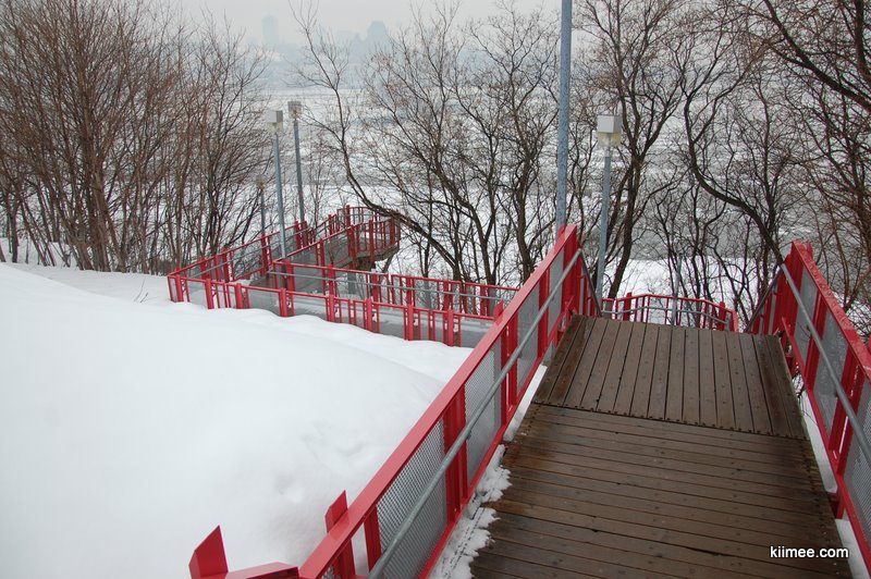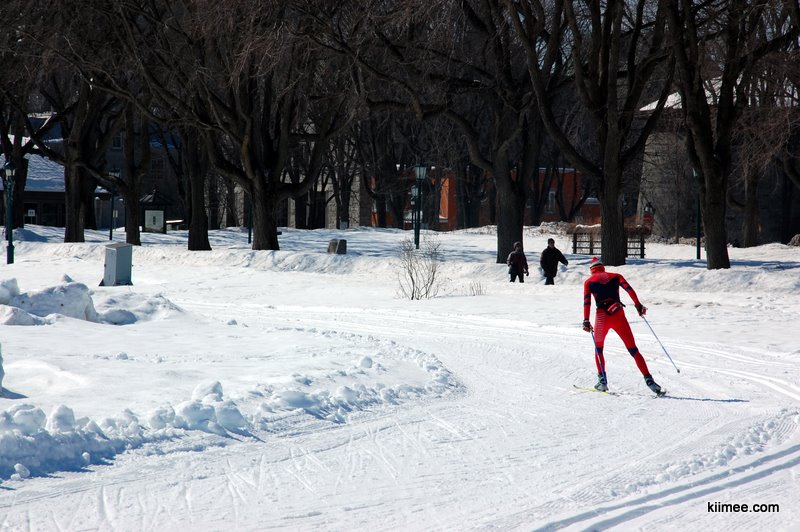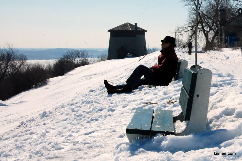 由议会大厦向河边前进到达战地公园(The Battlefields Park),这里曾经是18世纪时期英法两军交战场地,对于魁北克城的人们来说,这座公园的意义有如中央公园之于纽约,或是海德公园之于伦敦一般。不过,无论是历史上的刀枪剑影还是夏日喧闹的草坪,在冬季都被厚厚的积雪覆盖,偶尔可以见到在此滑雪的人们,这种运动在冬季的魁北克似乎比跑步还要流行。继前天在渥太华河边的雪地撒野之后,我们乐此不疲的在这里又大玩特玩了一通。最特别的是这里有些一冬天都无人涉足的缓坡,从坡上滚下的感觉妙不可言,在坡底想要起身的时候,旋转带来的眩晕一阵阵袭来,索性继续平躺在雪地上,凝视清澈的蓝天,有飞鸟划过,世界空旷纯洁,如同一名突然失语的热情诗人,这一刻之前与之后的存在都暂时失去意义。