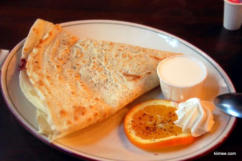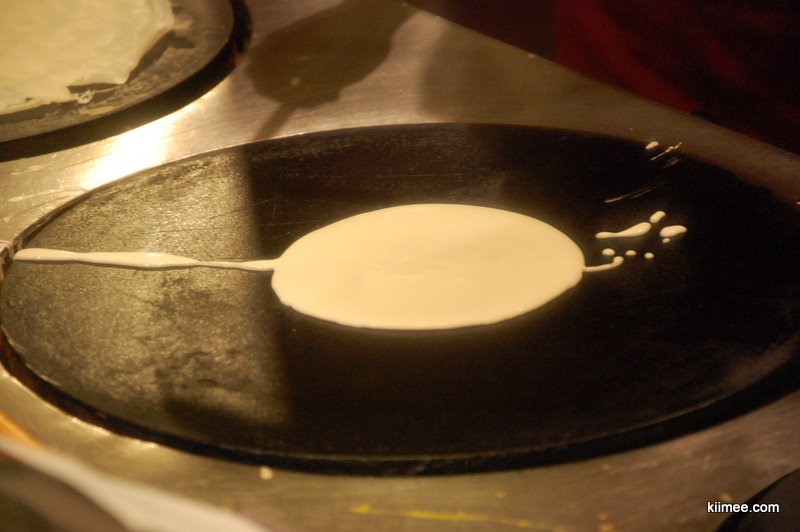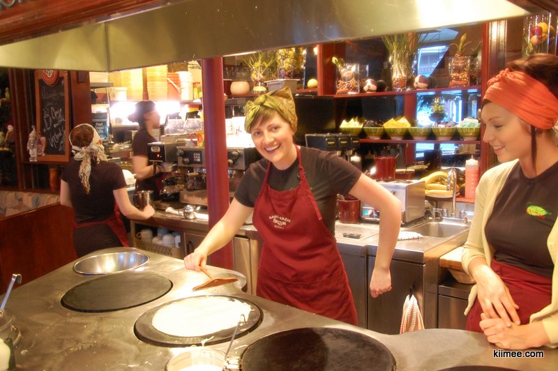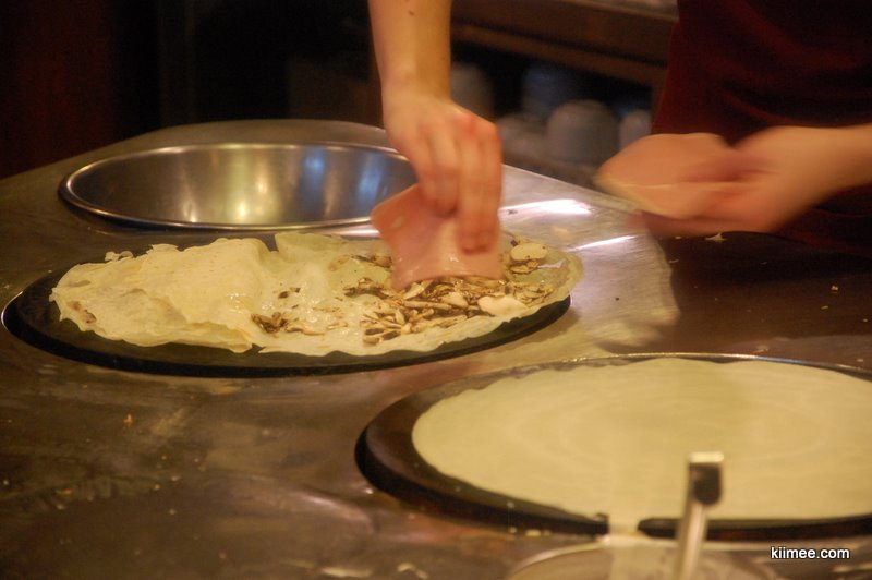 傍晚时分恰好回城,依据LP的指示,有三家经济型餐馆位于Sanit Jean街,相隔不远,其中一家以薄饼闻名,一家据说是发明蘸肉汁(也有奶酪)吃薯条这一吃法的餐馆之一。前者的薄饼做法,前半段与我们的煎饼果子完全相似,后半段的馅料与饼的折法不同;后者我们曾经在香港的海港城吃过一次,相对快餐店的薯条确实别有滋味。