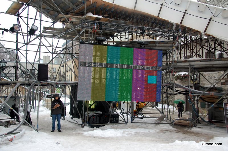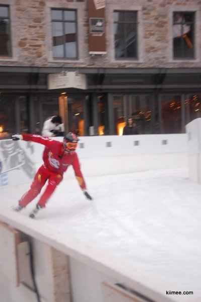 红牛Crashed Ice世锦赛是我们到达魁北克城之后临时得知的赛事,正式比赛安排在18、19两天举行,今天下午选手们可以进行适应场地的训练,晚间提供特别表演,可能顺便也用来调试演练各项设备。简单查了一下,Crashed Ice这项运动国内直译为“破冰”,名字完全看不出来这项活动是干嘛。实际上可以叫做冰上赛道竞速,选手们穿着与冰球相似的装备,头盔、各处护甲、冰鞋,在设置有障碍的大约5米宽的赛道上由高处向低处疾驰。魁北克城的这条赛道500多米,起点为昨天日志提到过的费尔蒙皇家酒店(Le Chateau Frontenac),终点在圣劳伦斯河畔,全程落差50多米。不得不提的是这里的施工速度,我们在四天前到达时,赛道搭建的工程才刚刚开始,今天上午就已经全部准备完毕。除了赛道施工之外,音响、灯光、转播、照明等设备一应俱全,统统准备就绪。施工过程中我们见到了各种机械设备,基本没见到使用简单机械的工人,原以为只有中国才会出现快速高效的施工场面,现在感到热火朝天、汗流夹背、你争我抢这些描述劳动场面的词汇所表示的意义似乎并不是一种进步的工作方式,而更像是原始社会的情境。最近媒体经常提到中国的“人口红利”问题,外媒也有报道,虽然一定会付出很大代价,但是过低的人力成本对新技术应用发展的遏制是迟早要解决的问题。