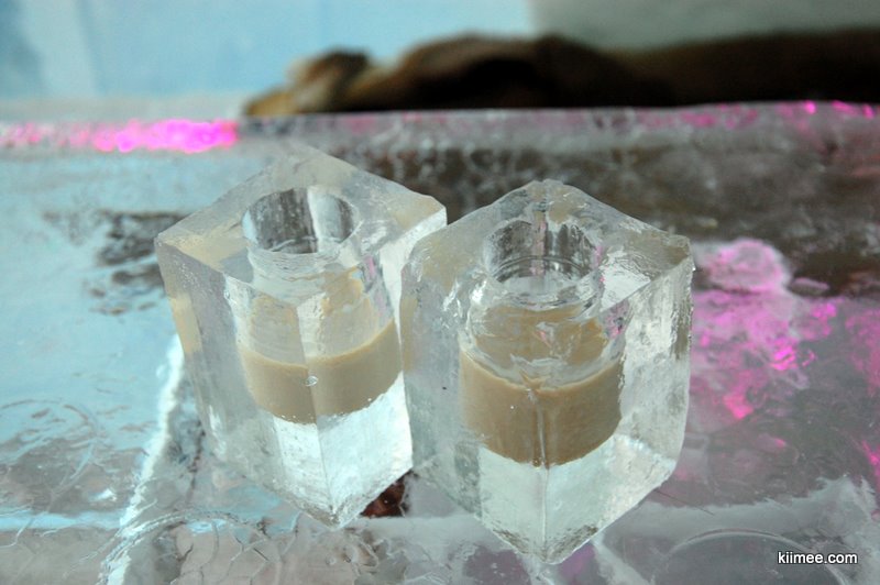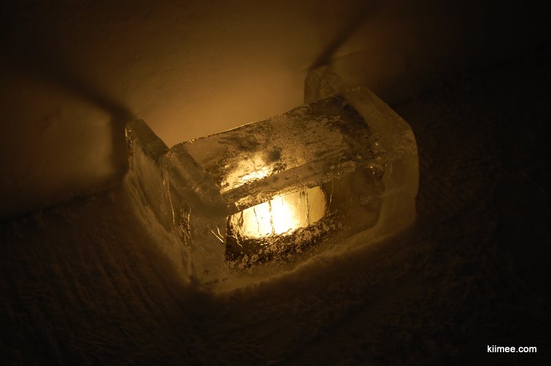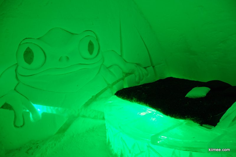 严冬季节算是这里的旺季,房价最低也需要数百加币,但是随着冬末气温回升,在宾馆关闭之前,其实也是融化之前,会推出一些特价房间,不过也要150加币左右。抱着酸葡萄心态,我们还是比较客观的认为:花钱住在这样的房间里,不是那么好玩的事。房间不设房门,只是有一面布帘,住客几乎没有隐私;没有任何电器与其他娱乐设施,通电的只有一些冷色调光泽的彩色灯泡;没有WIFI,手机信号不大好,与外界沟通有点儿障碍;房间不大,温度很低,不设洗浴与厕所,只有冰砌的桌椅与床,酒店提供床垫与睡袋,这是唯一的保暖措施。我们今天下午在城里恰好碰到前几天同住一家宾馆的墨西哥大姐,她说她和女儿前一天晚上去那里住的,她睡的很好,她女儿则冻的一夜没睡。
