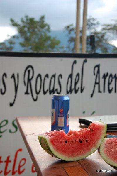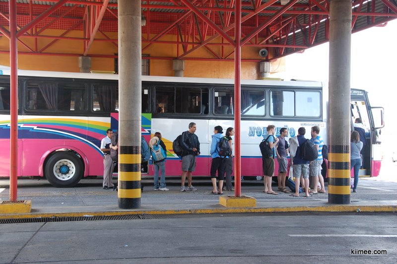 哥斯达黎加旅游业发达,针对游客有专门的shuttle巴士可以前往各地,不过价格那个贵啊,动辄30-40美金一个人。我们算算,还是搭当地巴士算了。向韩国mm咨询了本地巴士的车站,步行大约20分钟,就到了一个当地长途巴士站。这个长途巴士站其实非常小,大约就泊着5-6台车。放眼望去,外国人少之又少,我们新奇的拿着相机到处照相。结果过了一会儿,一个穿着西装革履的老外过来找我们说话。他说你们的相机什么的最好都不要拿出来,走路什么的也要小心点,因为这个区域都比较乱。他说他虽然长得金发碧眼,但他是当地人,所以才没事。听了他的话,我们顿时感到周围充满着打量的眼神,不禁一阵寒栗,马上收拾背包,藏头缩尾排队买票。还好顺利买到,前往Arenal火山旁的小镇Fortuna,每人大约4美金多一点,几乎是shuttle巴士票价的1/10。马上谢过这位好心人,一阵飞奔赶回闹市区。