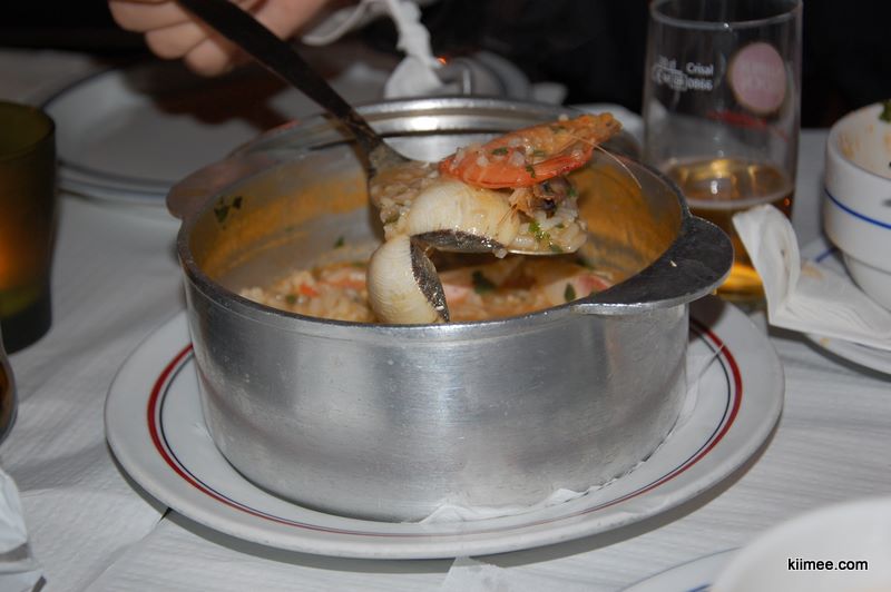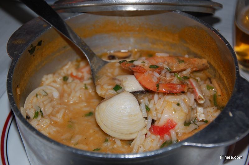 晚上回来,又累又饿,犒劳了自己葡萄牙的海鲜饭,居然是2个小铝锅端上来,分量非常足。我们要了一个海鲜饭和一个鱼饭,感觉就是到处都是肉啊,海鲜啊,米饭少少。吃起来很过瘾,因为价格不贵量又足,而且还很像深圳的砂锅粥。