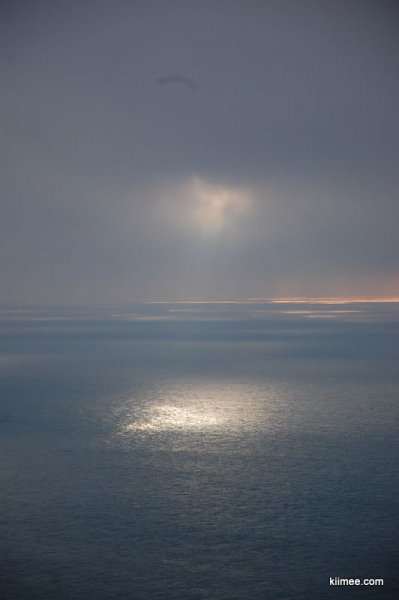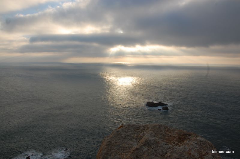 在辛特拉下了火车,离去罗卡角的汽车出发时间还差50分钟,我们决定继续秉承暴走精神,往城里去逛逛。没有想到,辛特拉不大,花了20分钟,我们就来到了近市中心的位置,时间刚好,看一眼又走回去,正好搭上去罗卡角的汽车。大约40分钟车程,罗卡角已近在眼前。可惜这里没有里斯本那么好的阳光,云层很厚,夕阳只出了几分钟就躲到云后去了。站在罗卡角远眺大西洋,远处茫茫一片,天空的云已经和海面连成一片,一层层颜色变幻着。太阳偶尔从云层的空隙中钻出来,投下一片灿烂的阳光,海水也因此耀眼起来,像天神降临般。