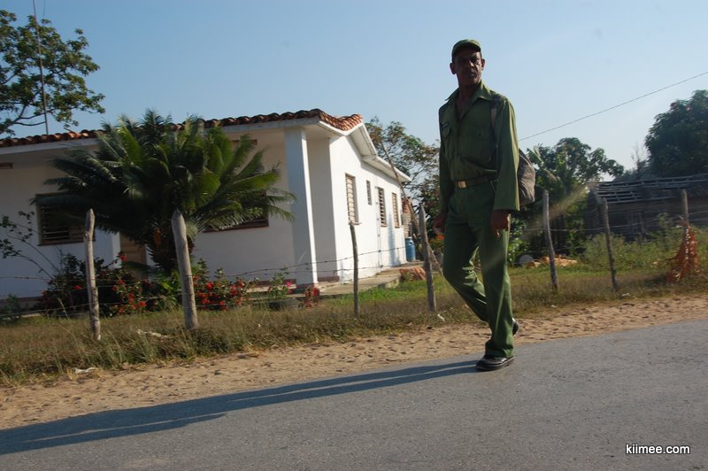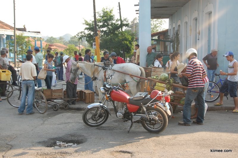 我们搭乘9:00出发的巴士,到达已近13:00。客车快要到站的时候,看到有两个老外端着相机跟着跑,很是奇怪,因为在古巴Viazul的车不算少,拍张照片不是什么难事。不过下车的一刻总算明白了他们镜头的对象——车下接客或是拉客的人们,至少有30个人在车下嚷作一团,这是我们到目前为止在古巴见过的最热闹的场面。手里拿着各种道具,有的是照片,有的是民宿的名字,接我们的客栈主人比较低调,不过我们比较显眼,一车游客只有我们两个亚洲面孔,自然也不需要逐一确认。