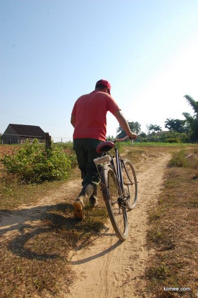 小伙子特别奇怪,不知道是怕人看见要避嫌还是什么缘故,一路骑着单车在前面远远的走,让我们在后面步行跟着,总离个50多米。走了几步跟不上,我们索性也就不管他了,让他一个人在前面跑,反正到了岔路会等我们。