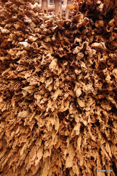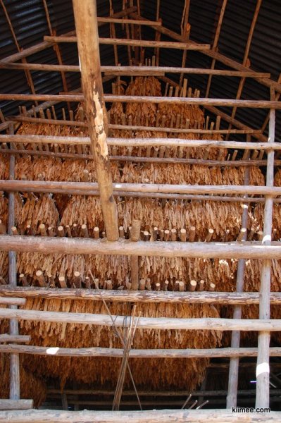 进了谷仓,才发现原来不是放粮食的,而是放烟叶的。采摘下的烟叶一串串的挂在杆上,分层晾干。细看下,烟叶有点长霉点了,不知道之后如何处理。小伙子把我们交给一个微胖的人然后就走了,原来这个才是我们正式的向导。不过我们很快郁闷的发现,向导大概只会5、6个英文单词。没有办法,只好硬着头皮跟着走,开始向导还试图给我们讲讲路边的植物与作物,但是完全没有效果,之后几乎一路无语。